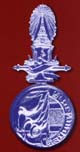 ประดิษฐานไว้เหนือเหรียญกลมโดยมีผ้าโบพันรอบคฑาไม้ชัยพฤกษ์ หัวเม็ดทรงมัณฑ์ เชื่อมประสานระหว่างกัน