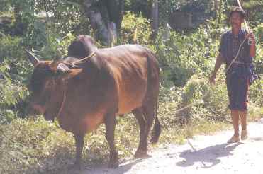 เจ้าของวัวชนจะพาวัวออกเดินหรือวิ่งเหยาะๆ ในตอนเช้า เพื่อออกกำลังกาย |