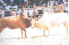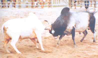 ขาวคอดำหรือไอ้โลมาใช้เขาซ้ายเขี่ยหน้าหัวไอ้ขาว หรือน้ำข้าวคอดำ โบราณเรียกว่า โลมา ขาวคอดำตัวนี้เป็นวัวมีชื่อของพิษณุโลก ชื่อว่า "ไอ้ดอกจิก" |