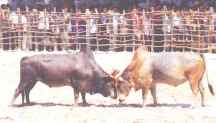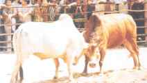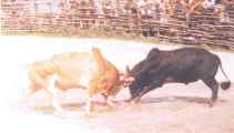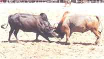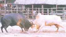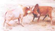 ไอ้แดงใช้เขาขาวตักเข้าที่หน้าไอ้ขาว |