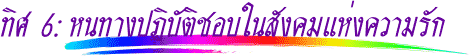 ที่กล่าวมาทั้ง 6 ทิศนี้ คือ หนทางปฏิบัติดี ปฏิบัติชอบด้วยของมนุษย์ที่อยู่ร่วมกันในสังคมด้วยความรัก |