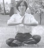 ใช้มือด้านซ้ายดันมือขวา มือขวา ต้านแรงมือซ้าย พร้อมกับดัด ปลายนิ้วให้โน้มไปด้านตรงข้าม ในขณะดันมือค่อยๆ สูดลมหายใจ เข้าให้ลึกที่สุด กลั้นลมหายใจ แขม่วท้อง ขมิบก้นไว้สักครู่ ผ่อนลม หายใจออกพร้อมกับค่อยๆ คลายมือ |